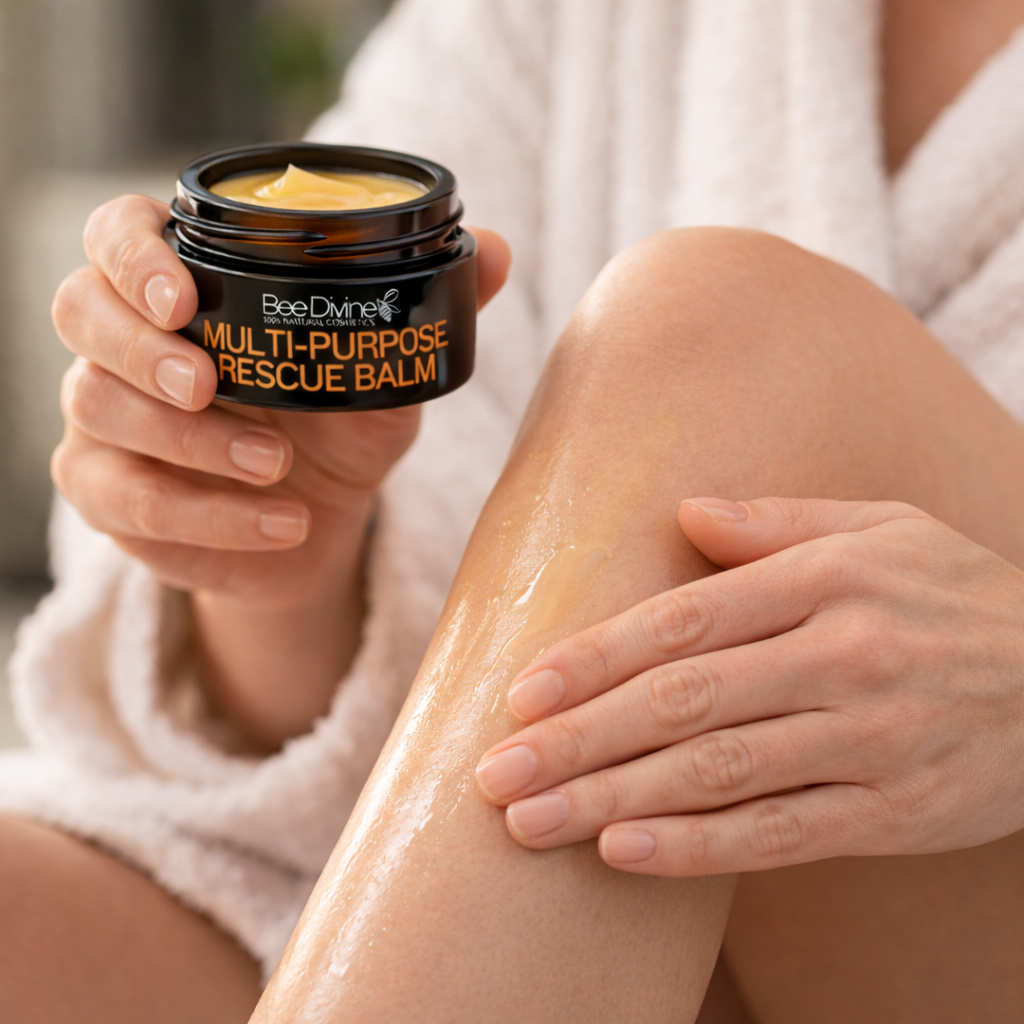Bee Divine products are crafted using botanicals, essential oils, and traditional lipid sources, including beeswax and grass-fed beef tallow, selected for their proven ability to support skin barrier function, resilience, and recovery.