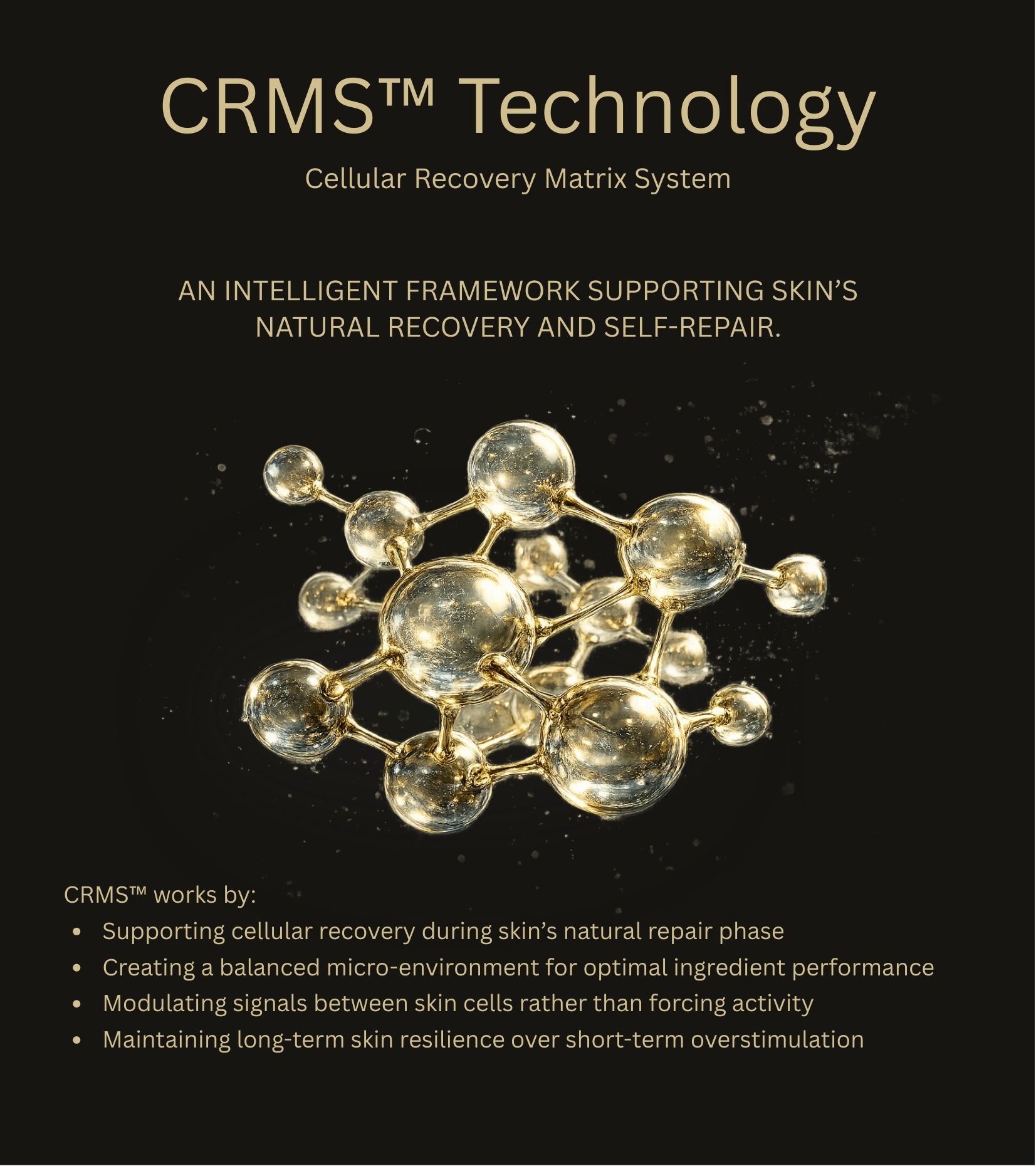 CRMS™ works in synergy with the skin’s natural biology — supporting recovery, balance and resilience without forcing visible change.